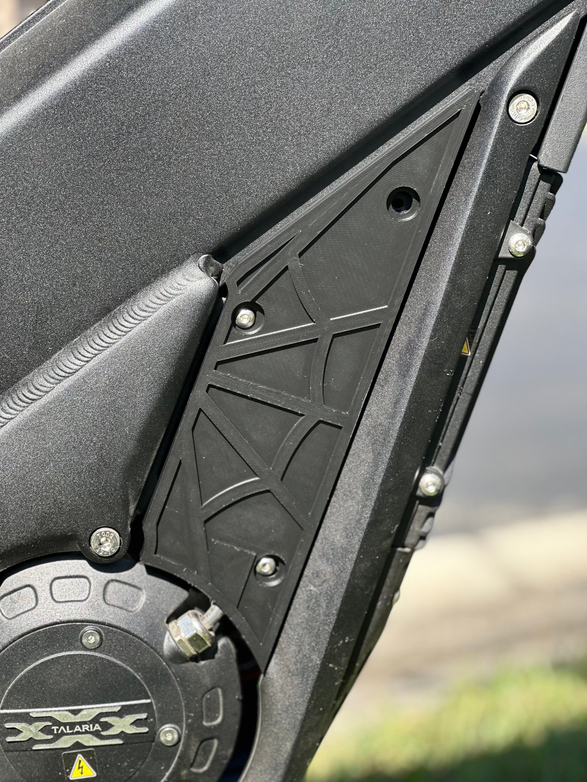 Greatly increase your style and class with our customized Talaria plastics! These plastics accommodate space for your charging port, and for any important wiring inside the bike. Like all of our products, they are made from high quality Polylactic Acid (PLA).