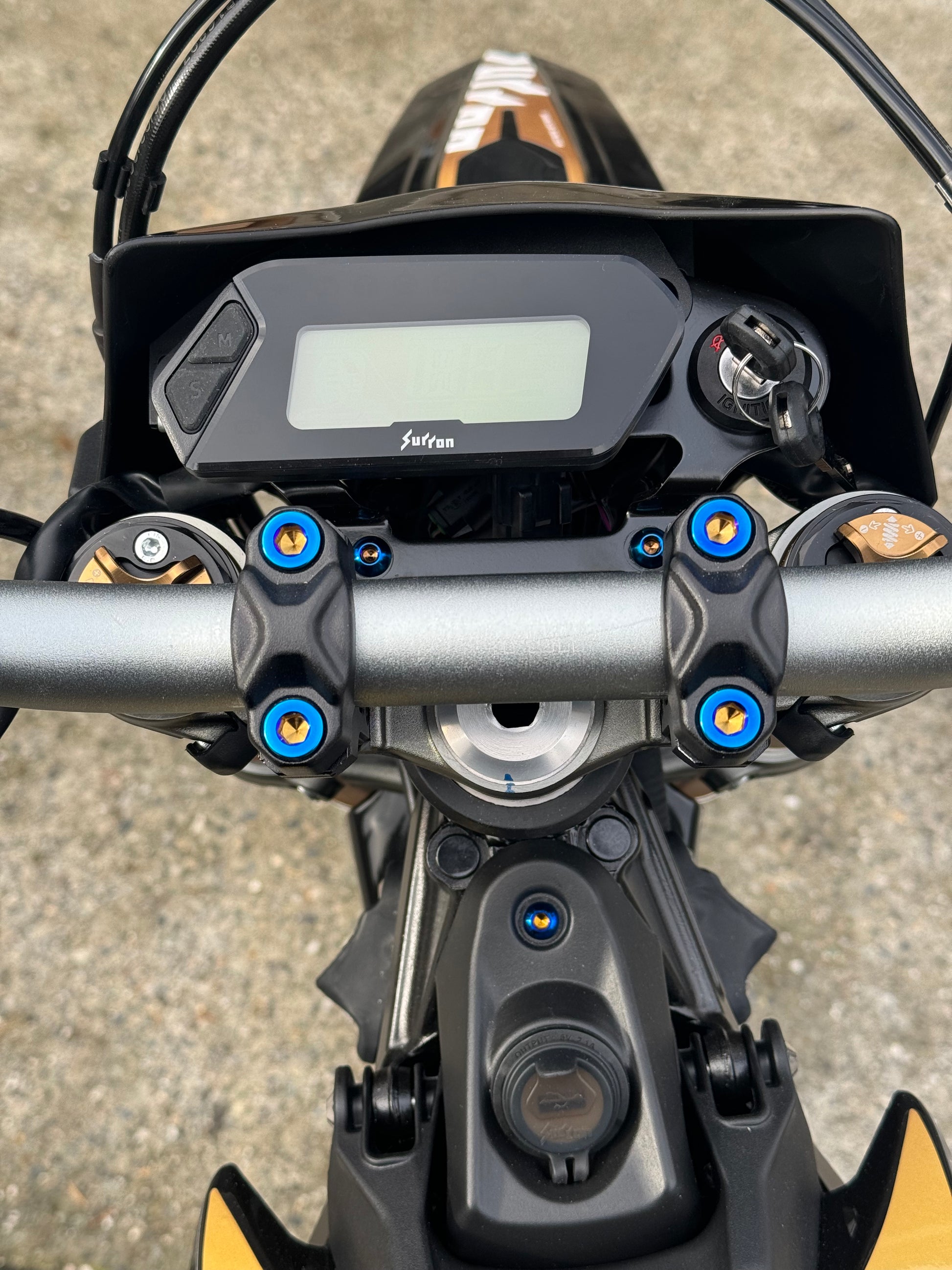 Includes 4 titanium bolts that replace your boring own silver onesย