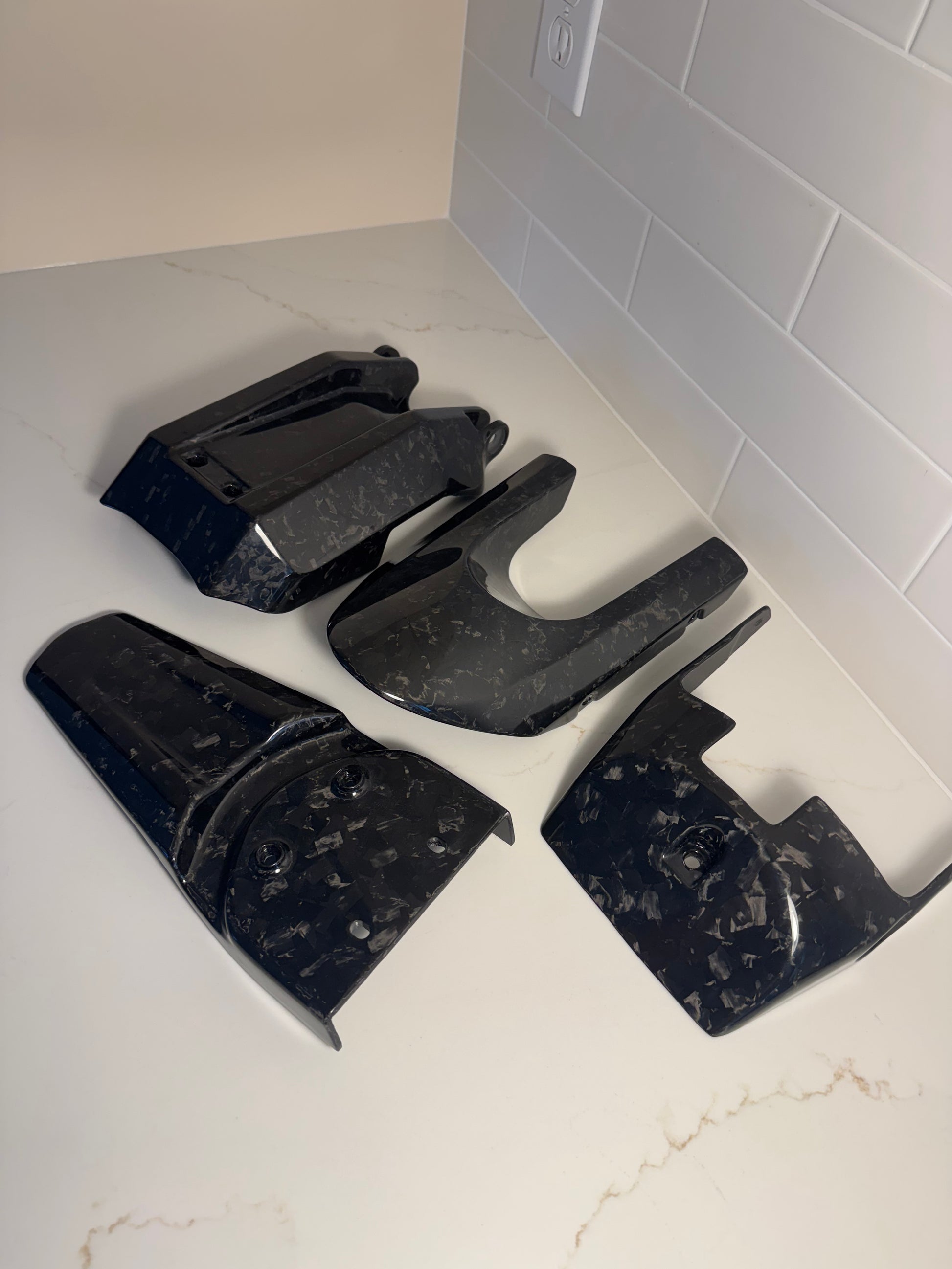 This is our full carbon fiber kit includes all visible components such as the battery lid, lid lock, rear fender, and mudguard. Made from 100% genuine carbon fiber and finished with a high-quality 3K epoxy coating, the kit offers both durability and a striking aesthetic. Created for straightforward installation, it enhances your bike’s appearance, ensuring it stands out over other basic builds!